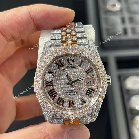 Atacado Personalizado VVS D Moissanite Relógio para Homens Banda De Aço Inoxidável Resistente À Água Iced Design Mecânico Passes Tester
